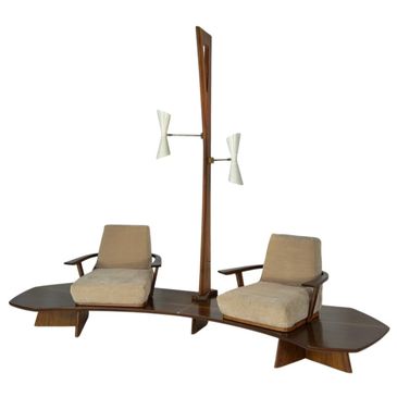 Samson Berman, NY circa 1955. 10 foot wide monumental seating platform with integrated lamp pole. Chairs can be exchanged or upholstered to suit.