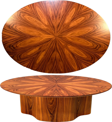 54" x 36" x 15.75" tall. Radial walnut with a rich appearance. $7,500